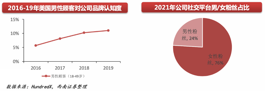 經(jīng)典案例:根據(jù)HundredX、西南證券等綜合資訊表明,結(jié)合美國(guó)咨詢公司HundredX對(duì)Lululemon美 國(guó)消費(fèi)者市場(chǎng)調(diào)查發(fā)現(xiàn),Lululemon 男性消費(fèi)者的 數(shù)量占比在逐步增長(zhǎng),從2021年1月的14.8%提升至同年11月的19.7%。其中,有越來(lái)越多的男性消 費(fèi)者會(huì)因?yàn)長(zhǎng)ululemon的剪裁、舒適度、時(shí)尚度購(gòu) 買產(chǎn)品。同時(shí)年齡段在18-49歲的男性消費(fèi)者對(duì)Lululemon名牌的認(rèn)知度也有了較高的提升。