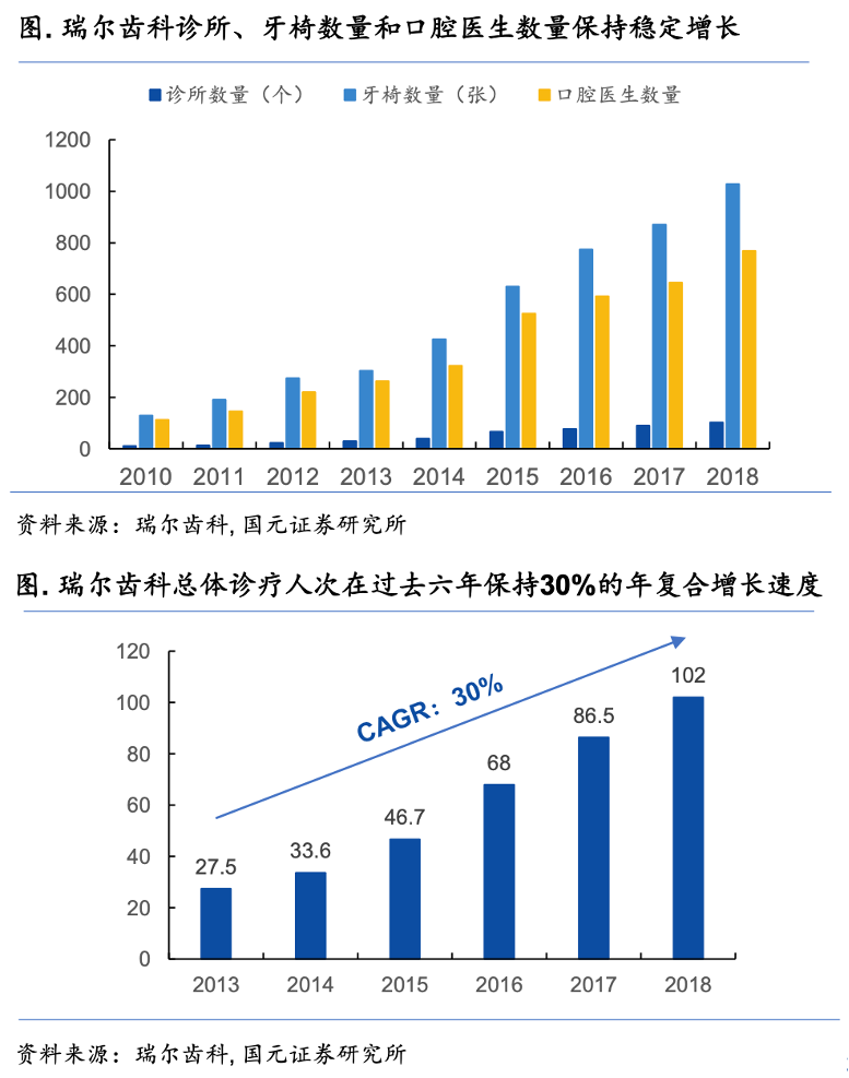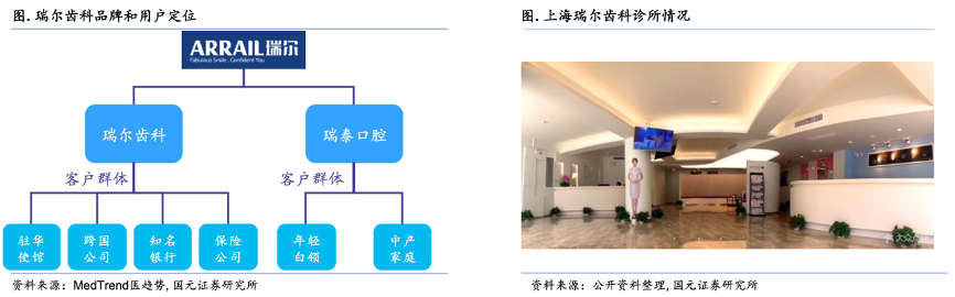 經(jīng)典案例:根據(jù)MedTrend醫(yī)趨勢(shì)、公開(kāi)資料整理、國(guó)元證券研究所等綜合資訊表明,瑞爾齒科每個(gè)診所都具有全科和專(zhuān)科醫(yī)生,平均配置10把牙椅、8名醫(yī)生、10名護(hù)士。服務(wù)品質(zhì)高端化的同時(shí),也使得單個(gè)門(mén)診的投資成本、運(yùn)營(yíng)成本較高。2012年后,瑞爾集團(tuán)拓寬了瑞泰品牌,服務(wù)定位年輕白領(lǐng)和中產(chǎn)家庭,實(shí)現(xiàn)品牌渠道下沉。
