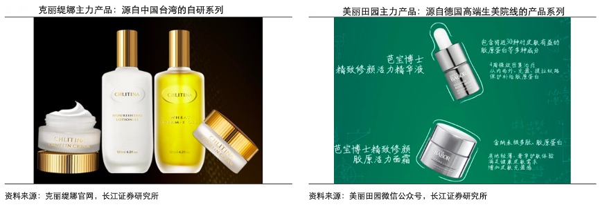 經(jīng)典案例:根據(jù)克麗緹娜官網(wǎng)、美麗田園微信公眾號、長江證券研究所等綜合資訊表明,隨著內(nèi)地生美行業(yè)發(fā)展,中高端客群偏好逐步轉(zhuǎn)向歐美和日本院線產(chǎn)品。美麗田園從 90 年代成立之初便引進(jìn)德國丹妮嘉、芭寶高端院線品牌,歐洲原裝進(jìn)口的概念沿用至今,其產(chǎn)品項目與品牌形象更為吻合,從門店布局、選址到產(chǎn)品項目陳列所體現(xiàn)出的品牌形象具備高度一致性,或能更精準(zhǔn)地鎖定其高端核心客群。