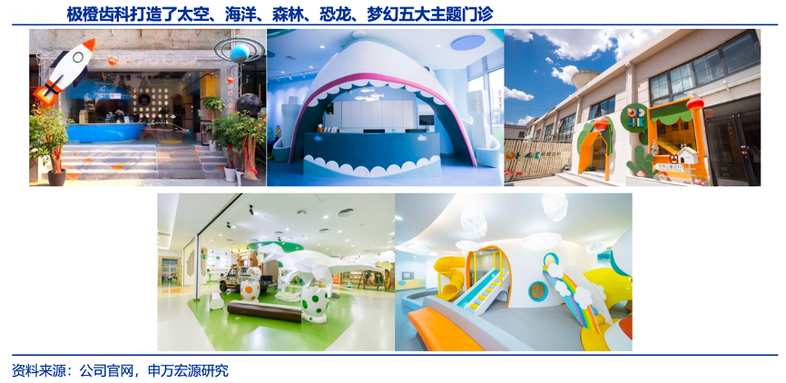 經(jīng)典案例:根據(jù)公司官網(wǎng)、申萬宏源研究等綜合資訊表明,極橙以“幫孩子快樂看牙”為使命,首創(chuàng)沉浸式游戲化看牙體驗,并將每家診所都打造成孩子的“主題游樂場”,為孩子開發(fā)身臨其境的體驗。現(xiàn)已有太空、海洋、森林、海陸空三大 主題。