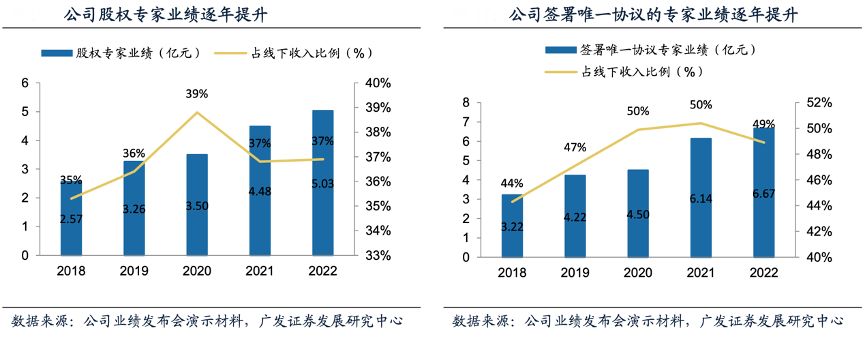 經(jīng)典案例:根據(jù)公司業(yè)績(jī)發(fā)布會(huì)演示材料、華創(chuàng)證券等綜合資訊表明,固生堂通過(guò)“合伙人”機(jī)制與醫(yī)師建立股權(quán)綁定,保持牢固可靠的合作關(guān)系,激發(fā)股權(quán)專家的主觀能動(dòng)性,減少多點(diǎn)執(zhí)業(yè)醫(yī)師的流動(dòng)性,為門診客戶提供更可靠、 更優(yōu)質(zhì)的服務(wù)。股權(quán)專家和簽署唯一協(xié)議的專家貢獻(xiàn)了集團(tuán)線下收入的絕大部分,提供了公司整體業(yè)績(jī)的穩(wěn)定性保證。