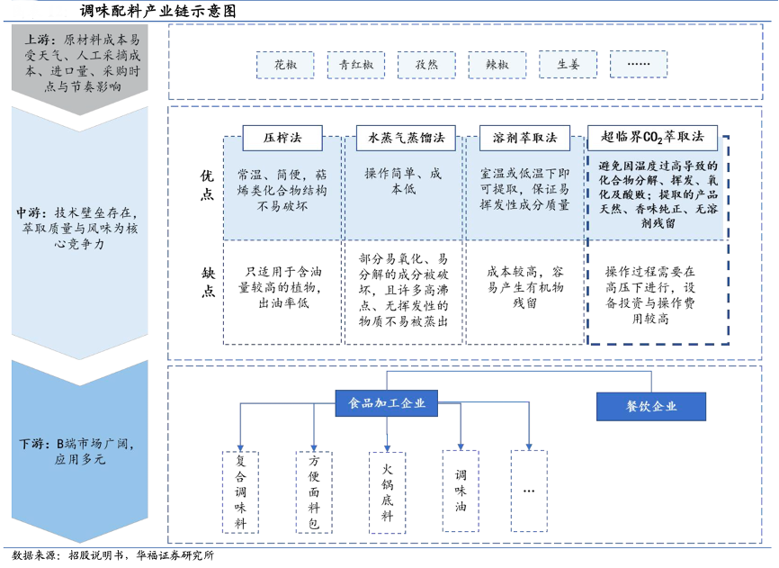經(jīng)典案例:根據(jù)招股說明書、華福證券研究所等綜合資訊表明,仲景食品公司公司調(diào)味配料以花椒、辣椒等香辛植物提取物為主,近年隨川味食品的不斷推廣而快速發(fā)展,例如火鍋底料、川調(diào)(川菜與川味休閑食品帶動)的持續(xù)滲透花椒調(diào)味配料的應(yīng)用范圍不斷拓寬。