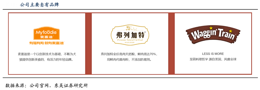 經(jīng)典案例:根據(jù)公司官網(wǎng)、東吳證券研究所等綜合資訊表明,乖寶寵物公司打造自有品牌矩陣,代表品牌包括麥富迪、弗列加特、Waggin'Train。其中, 麥富迪是犬貓寵物食品全品類(lèi)的品牌,弗列加特定位于高端貓糧,Waggin'Train 定位于 高端狗糧。2022 年公司自有品牌實(shí)現(xiàn)營(yíng)收 20.5 億元,同增 54.1%。