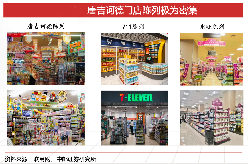 經(jīng)典案例:根據(jù)聯(lián)商網(wǎng)、中郵證券研究所等綜合資訊表明,唐吉訶德店內(nèi)1000-3000平米的空間可陳列4-6萬個SKU,為消費(fèi)者提供了廣闊的“探寶”空間,弱化消費(fèi)者理性思考時(shí)間,誘使消費(fèi)者深入商場內(nèi)部挑選心儀但非剛需商品,以“大量供給創(chuàng)造超額需求”。