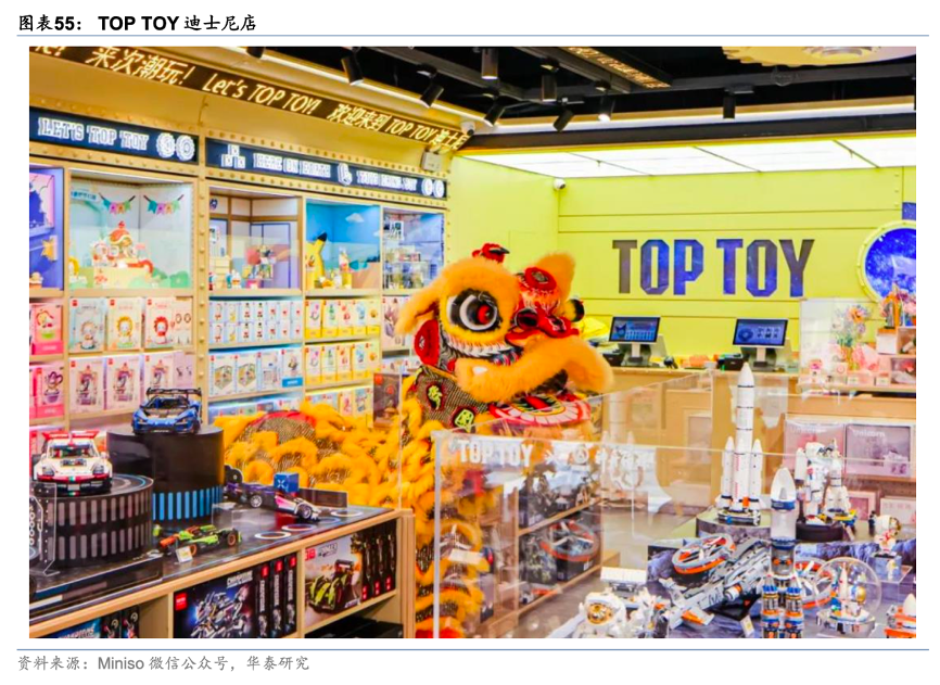 經(jīng)典案例:根據(jù)TOP TOY官方微博、華泰研究等綜合資訊表明,2023 年 9 月,TOP TOY 在上海迪士尼小 鎮(zhèn)開設(shè)以“潮玩機(jī)械廠”為設(shè)計(jì)理念的小鎮(zhèn)店,匯聚上百款知名 IP,為消費(fèi)者提供 600+SKU 的創(chuàng)新產(chǎn)品。店內(nèi)設(shè)計(jì)以齒輪與機(jī)械為主要裝飾元素,布局上與潮玩、積木、盲盒等產(chǎn)品 深度融合。