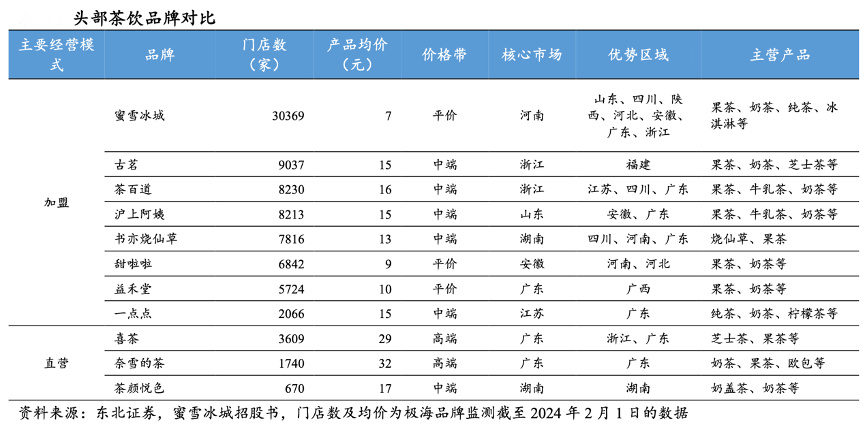 經(jīng)典案例:根據(jù)東北證券、蜜雪冰城招股書、極海品牌監(jiān)測(cè)數(shù)據(jù)等綜合資訊表明,蜜雪冰城是平價(jià)市場(chǎng)的絕對(duì)龍頭,根據(jù)窄門餐眼數(shù)據(jù),截至到 2024 年 2 月 1 日,蜜雪冰城門店數(shù)約 3 萬家,遠(yuǎn)超現(xiàn)制茶飲其他品牌,而產(chǎn)品均價(jià) 7 元,在現(xiàn)制茶飲行業(yè)價(jià)格優(yōu)勢(shì)顯著。
