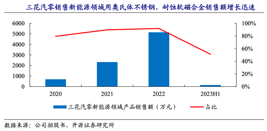 經(jīng)典案例:根據(jù)公司招股書、開源證券研究所等綜合資訊表明,與金則利形成合作的氫能源領(lǐng)域優(yōu)質(zhì)客戶已有三家。其不斷開拓新能源領(lǐng)域 的優(yōu)質(zhì)客戶,對重要客戶三花汽零銷售的新能源領(lǐng)域用奧氏體不銹鋼、耐蝕軟磁合 金產(chǎn)品的銷售額分別為 692.04 萬元、2,322.70 萬元、5,150.01 萬元和 148.81 萬元, 占新能源領(lǐng)域收入的比例分別為 79.38%、89.62%、91.81%和 51.00%。