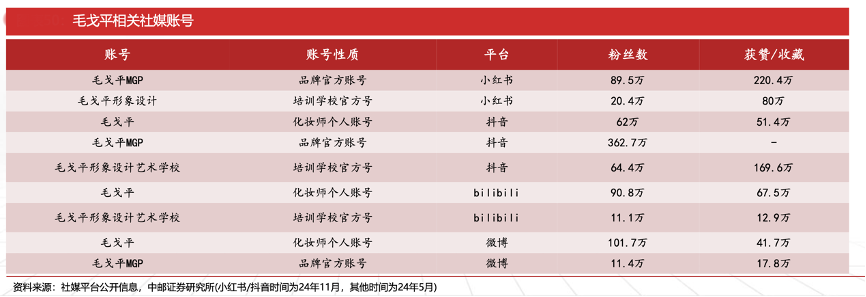 經典案例:根據(jù)社媒平臺公開信息、中郵證券研究所等綜合資訊表明,毛戈平個人B站賬號于2020年開始運作,通過發(fā)布化妝干貨視頻+達人合作推廣打造個人IP,視頻中使用毛戈平品牌產品,為品牌營銷發(fā)力;截至2024年5月, 毛戈平個人b站賬號發(fā)布作品16條,獲贊67.5萬,平均每個作品獲贊量高達4.2萬,視頻用戶認可度高。