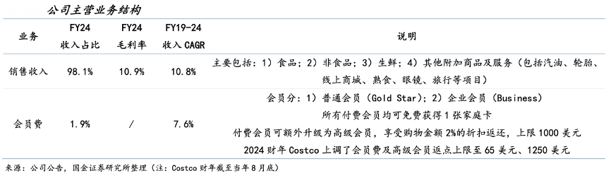 經(jīng)典案例:根據(jù)公司公告、國(guó)金證券研究所等綜合資訊表明,不同于其他零售業(yè)態(tài),Costco公司獨(dú)有的會(huì)員制能帶來會(huì)員費(fèi)收入。公司會(huì)員分普通會(huì)員(Gold Star)和企業(yè)會(huì)員(Business),二者都需要支付年費(fèi)因此也可稱為付費(fèi)會(huì)員,美國(guó)市場(chǎng)定價(jià) 60 美元/年(2024 財(cái)年上調(diào)至 65 美元/年),同時(shí)可免費(fèi)獲得一張家庭會(huì)員卡。