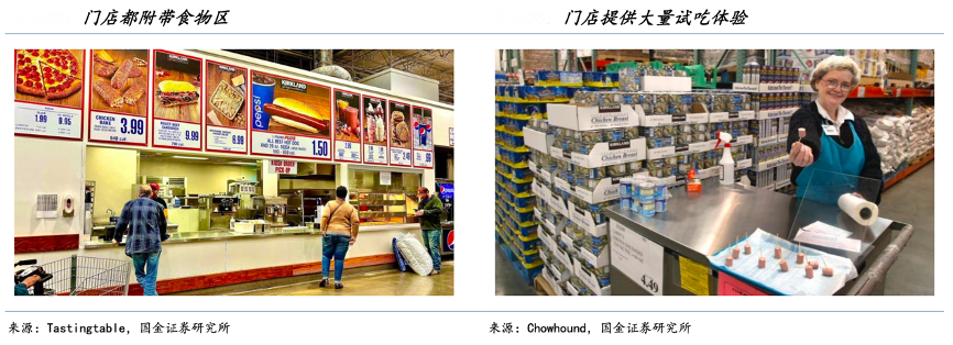 經(jīng)典案例:根據(jù)Tastingtable、Chowhound、國(guó)金證券研究所等綜合資訊表明,Costco公司門店提供大量附加服務(wù),以達(dá)到提升消費(fèi)者體驗(yàn)和促進(jìn)銷售的目的。為了讓會(huì)員感到會(huì)員費(fèi)物有所值,公司不僅銷售的商品更具有性價(jià)比,還通過經(jīng)營(yíng)種類豐富&價(jià)格實(shí)惠的食物區(qū)、提供大量試吃點(diǎn)位打造口碑。