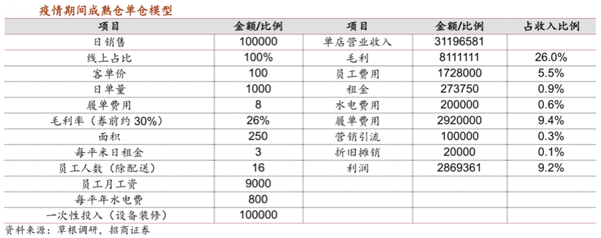 經(jīng)典案例:據(jù)招商證券相關(guān)資訊,叮咚買菜第一批開了12個前置倉,第二批開了38個前置倉,之后對成熟的老倉進(jìn)行分拆和裂變。如果老倉日均單量達(dá)到 1500~2000 單,叮咚買菜就把它拆分裂變成2~3個新的前置倉,前置倉之間互相分享了訂單量。數(shù)據(jù)顯示,老倉如果不做分拆裂變,日均單量達(dá)到 1000 單以上大概需要經(jīng)歷 6 個月。目前,叮咚買菜在進(jìn)入的大部分城市中都做到了線上日均單量第一名。