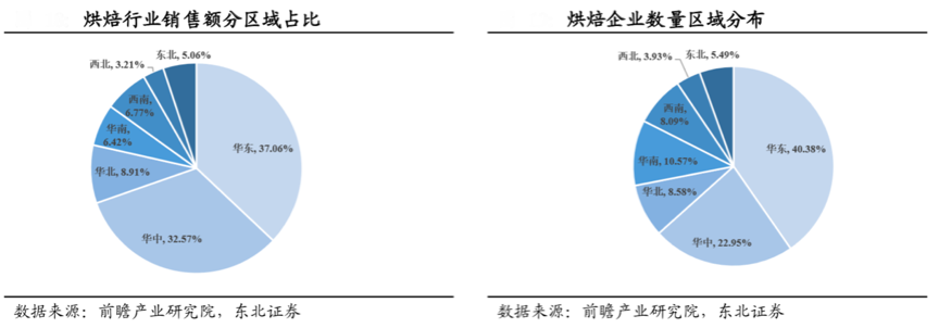 地域化,分域拓展,多地域開(kāi)發(fā)。根據(jù)前瞻產(chǎn)業(yè)研究院、東北證券等綜合資訊表明,從區(qū)域分布來(lái)看,華東、華中地區(qū)共占據(jù)全國(guó)近70%的銷(xiāo)售額,烘焙企業(yè)數(shù)量大多集中在華東(40.38%)、華中(22.95%),“地域化經(jīng)營(yíng)”特征明顯,大量烘焙企業(yè)也是圍繞著區(qū)域消費(fèi)者做“深度經(jīng)營(yíng)”,以消費(fèi)拉動(dòng)生產(chǎn),“區(qū)域化深度經(jīng)營(yíng)”成為烘焙食品企業(yè)的關(guān)鍵成長(zhǎng)路徑之一。