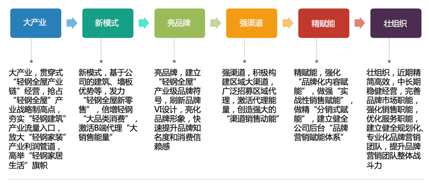 “六步致勝”之一:大產(chǎn)業(yè),貫穿式“輕鋼全屋產(chǎn)業(yè)鏈”經(jīng)營,搶占“輕鋼全屋”產(chǎn)業(yè)戰(zhàn)略制高點(diǎn),夯實(shí)“輕鋼建筑”產(chǎn)業(yè)流量入口,放大“輕鋼家裝”產(chǎn)業(yè)利潤管道,高舉“輕鋼家居生活”旗幟