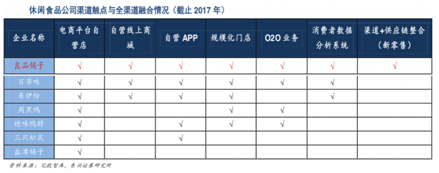 從億歐智庫、東興證券研究所等綜合資訊表明,各休閑食品公司經(jīng)過多年發(fā)展,大多已經(jīng)建立了電商平臺自營店、線上商城、網(wǎng)絡(luò)分銷店等網(wǎng)絡(luò)商店,部分優(yōu)秀休閑食品企業(yè)建立了品牌連鎖專賣體系,多數(shù)休閑食品通過電商平 臺、自營 APP、線下門店、O2O 外賣等多觸點為消費者提供產(chǎn)品,休閑食品電商新零售全渠道場景建設(shè)蔚然成風(fēng)。