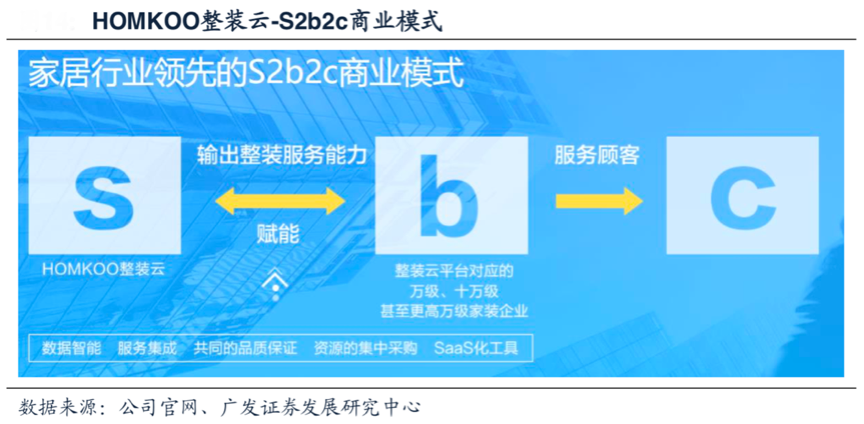 家裝新零售新服務(wù)實(shí)質(zhì)是建立了一個(gè)家裝新零售的大平臺(tái),強(qiáng)化了平臺(tái)對(duì)各家裝產(chǎn)業(yè)鏈環(huán)節(jié)的深度賦能。如根據(jù)尚品宅配官網(wǎng)、廣發(fā)證券發(fā)展研究中心等綜合資訊表明,其于2017年10月,尚品宅配集團(tuán)新居網(wǎng)提出HOMKOO整裝云 項(xiàng)目,通過打造一個(gè)同時(shí)解決家居品牌方、裝修公司痛點(diǎn)和顧客痛點(diǎn)的云服務(wù)平臺(tái),在為家具品牌裝修公司賦能的同時(shí),為消費(fèi)者提供一站式裝修解決方案,幫助中小型裝修公司實(shí)現(xiàn)從半包、全包向整裝的改變。在整個(gè)裝修過程中,HOMKOO整裝云在多環(huán)節(jié)賦能家居品牌,是其一大亮點(diǎn)。