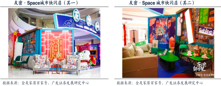 經(jīng)典案例:根據(jù)全友家居百家號(hào)、廣發(fā)證券發(fā)展研究中心等綜合資訊表明,2019年9月,綠色家居品牌全友就在上海合生匯舉辦為期兩天的“友密·Space 城市快閃店”。其通過復(fù)古國潮設(shè)計(jì)提升新穎性和話題度、吸引消費(fèi)者前來,并且通過互動(dòng)場景來提升消費(fèi)者感官體驗(yàn);在設(shè)計(jì)上,該店將復(fù)古國潮融入設(shè)計(jì),結(jié)合京劇生、旦、凈、丑打造四種具有人格標(biāo)簽的城市會(huì)客廳;在互動(dòng)上,消費(fèi)者可以體驗(yàn)各種復(fù)古小游戲的“電競局”趣玩會(huì)客廳、品嘗美食的“暢飲桌”等。