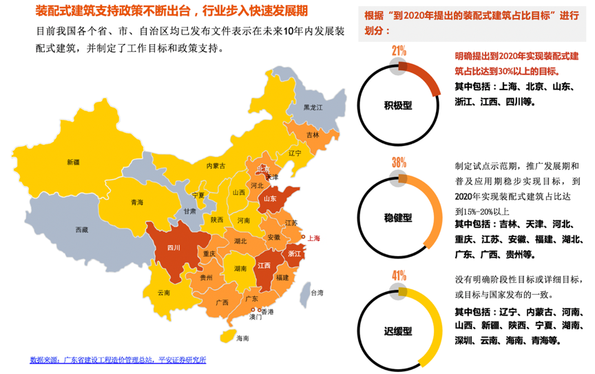 以“輕鋼房屋”為代表的裝配式建筑受到政策的極大鼓勵,各省市紛紛出臺了鼓勵政策,正可以推動“輕鋼房屋”在全國的快速擴(kuò)張。根據(jù)廣東省建設(shè)工程造價管理總站、平安證券研究所等綜合資訊表明,目前,全國31個省份均發(fā)布了相關(guān)的激勵政策,新疆的激勵政策類型最多(8項(xiàng)),其次是四川省(6項(xiàng))。全國政策激勵平均為4項(xiàng),其中激勵政策條款數(shù)量靠前的省份依次是新疆、四川、黑龍江、河南、湖南、內(nèi)蒙古、江西、貴州、西藏等。