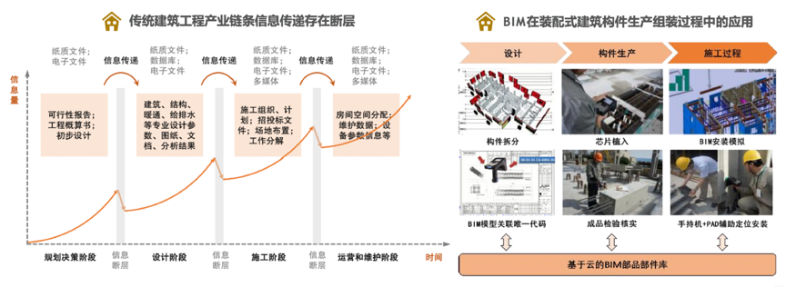 根據(jù)平安證券研究所等綜合資訊表明,BIM技術(shù)的引入可以將設(shè)計(jì)方案、制造需求、安裝需求集成在BIM模型中,在實(shí)際建造前統(tǒng)籌考慮設(shè)計(jì)、制造、安裝的各種要求,把實(shí)際制造、安裝過程中可能產(chǎn)生的問題提前消滅。傳統(tǒng)的裝配式建筑設(shè)計(jì)方法中是通過預(yù) 制構(gòu)件加工圖來表達(dá)預(yù)制構(gòu)件的設(shè)計(jì),其平立剖面圖紙還是傳統(tǒng)的二維表達(dá)形式。