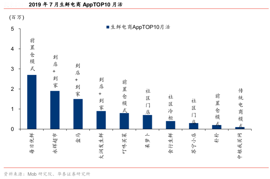 生鮮行業(yè)競爭激烈,優(yōu)秀品牌“先發(fā)優(yōu)勢”明顯。據(jù)華泰證券等相關資訊表明,經(jīng)過2013-2016年的野蠻生長,2017 年以來行業(yè)進入洗牌期,頭部企業(yè)先發(fā)優(yōu)勢愈發(fā)明顯。2019年,部分尾部的生鮮電商平臺步入困境,比如呆蘿卜、我廚生鮮等平臺面臨經(jīng)營困境,行業(yè)競爭格局不斷優(yōu)化,每日優(yōu)鮮、永輝生活、盒馬等排名靠前的生鮮電商 APP 月活均過150 萬。