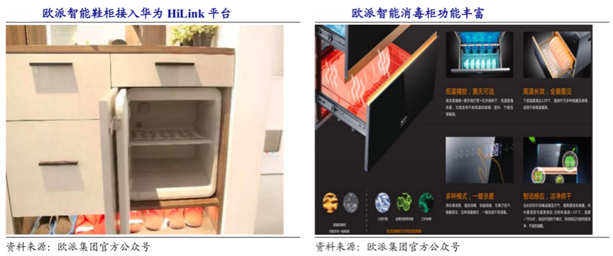 經(jīng)典案例:根據(jù)公司公告、開源證券研究所等綜合資訊表明,2019 年 8 月,歐派與華為達成戰(zhàn)略簽約,歐派家居將全面對接華為 HiLink 平臺,推 進在家裝領(lǐng)域的智能化進程。在線下渠道,歐派將主推華為 HiLink 生態(tài)產(chǎn)品及全屋 智能家裝方案,并聯(lián)合探索線下渠道營銷全屋智能方案套包。