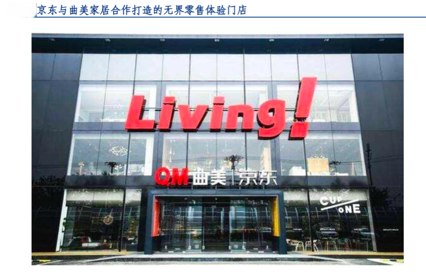 經(jīng)典案例:根據(jù)公開資料、長城證券研究所等綜合資訊表明,京東與曲美家居正共同打造線下“數(shù)字化家居門店”,利用無界零售的概念為家居行業(yè)賦能,曲美京東之家Living Mall集休閑娛樂、數(shù)字營銷、一站式消費于一體,為消費者提供類似泛家居零售的時尚生活購物體驗、精裝服務(wù)、成品家具及建筑材料等產(chǎn)品服務(wù)。