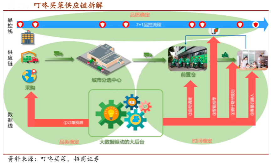 經典案例:據(jù)招商證券等資訊表明,叮咚買菜 70%~80%的蔬菜、水果品類在源頭做直采,絕大部分肉禽蛋品類和品牌商做 直采。截至 2019年7月,叮咚買菜已與 200 多家合作社、3000 余名農戶、養(yǎng)殖戶進 、行合作,進行源頭直采。源頭直采減少了中間商的各種中轉環(huán)節(jié),最大限度減少損耗,保持新鮮,并且降低了成本。