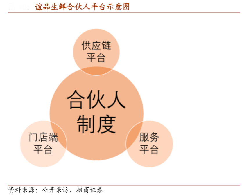 經(jīng)典案例:據(jù)公開采訪、招商證券等綜合資訊表明,在門店端的合伙人方面,誼品生鮮門店員工以自有資金和公司合資開店,最后按利潤進行分紅。而合伙人出資金額與自身能力相關(guān)。通常,一家誼品生鮮門店店長投入 10-40 萬元不等,副店長、小店長投入 2-10 萬元不等。但是出資比例一般不會超過單店的 40%,同時合伙人享有的是分紅權(quán)而不是股權(quán)。