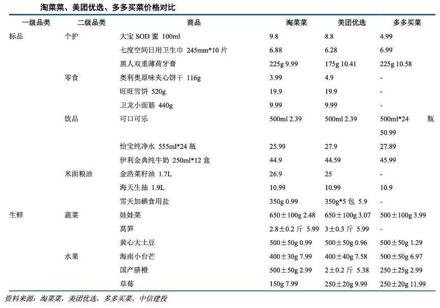 經(jīng)典案例:根據(jù)淘菜菜、美團優(yōu)選、多多買菜和中信建投等綜合資訊表明,在性價比基礎(chǔ)上,淘菜菜強調(diào)好品質(zhì)和豐富性,希望為下沉市場帶來一日三餐的消費升級,而不是與線下消費場景進行簡單的價格競爭。