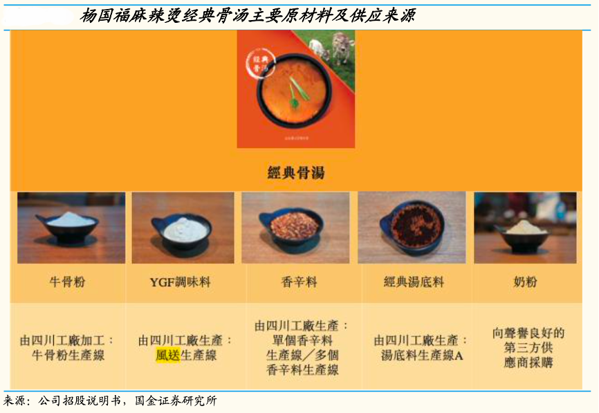 經(jīng)典案例:根據(jù)公司招股說明書、國金證券研究所等綜合資訊表明,楊國福創(chuàng)新麻辣燙湯底配方,通過加入奶粉等營養(yǎng)成分,使麻辣燙更符合大眾口味,公司“經(jīng)典骨湯”配方經(jīng)典、有辨識度,由于“麻”、“辣”具有一定成癮性,湯底風味足、能形成一定口味粘性,是品牌擁有長生命周期的重要支撐。