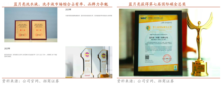 經(jīng)典案例:根據(jù)公司官網(wǎng)、招商證券等綜合資訊表明,結(jié)合中國商業(yè)聯(lián) 合會、中華全國商業(yè)信息中心統(tǒng)計(jì)數(shù)據(jù),藍(lán)月亮洗衣液連續(xù) 12 年(2009-2020)、洗手液連續(xù) 9 年(2012-2020)行 業(yè)市場綜合占有率第一,在 Chnbrand 發(fā)布的中國品牌力指數(shù)品牌排名中,藍(lán)月亮洗衣液、洗手液品牌力指數(shù)連續(xù) 11 年(2011-2021)第一。其堅(jiān)持可持續(xù)發(fā)展理念,在國內(nèi)外屢獲環(huán)境保護(hù)、社會公益獎(jiǎng)項(xiàng)。