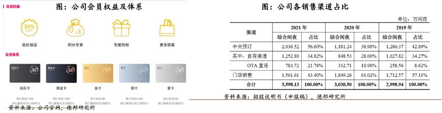 經(jīng)典案例:根據(jù)公司官網(wǎng)、德邦研究所等綜合資訊表明,東呈酒店公司已建立起完善的銷售渠道,會(huì)員粘性高,會(huì)員消費(fèi)間夜數(shù)占比70%。截至2021年底,東呈會(huì)會(huì)員數(shù)量超過(guò)5,500萬(wàn)人,相比2019年初增長(zhǎng)140%;2021年線上會(huì)員月活量平均超過(guò)120萬(wàn)人。
