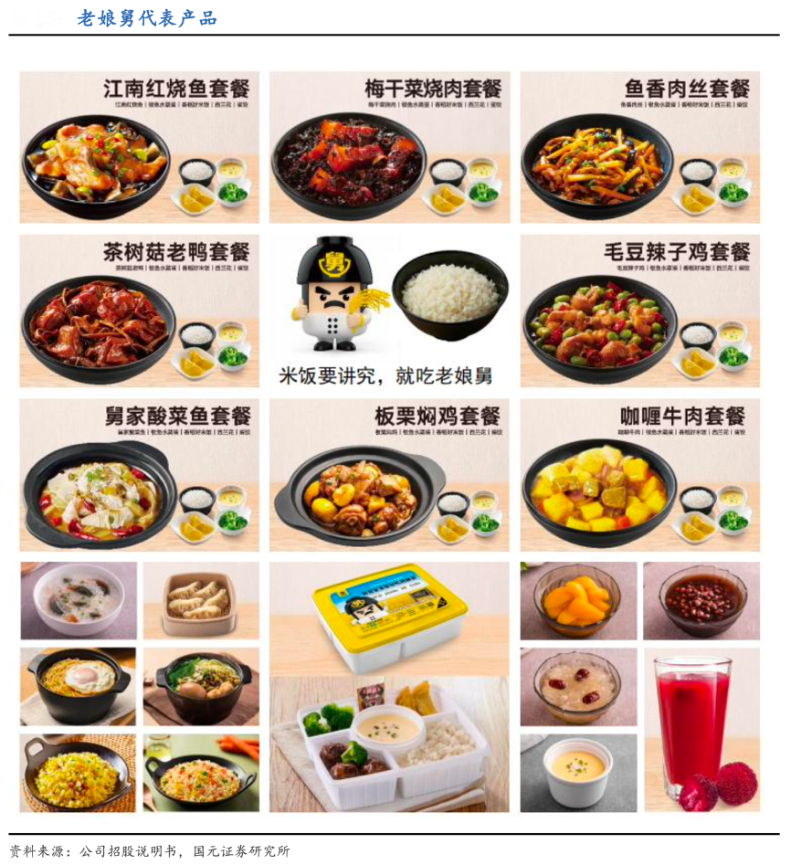 經(jīng)典案例:根據(jù)公司招股說明書、國元證券研究所等綜合資訊表明,老娘舅產(chǎn)品方面,標(biāo)準(zhǔn)化套餐突出“米飯+主菜”的重視飲食文化特征,兼顧蔬菜小食、面食湯羹、甜品飲料等多元營養(yǎng)組合。公司代表餐品包括“江南紅燒魚”“梅干菜燒肉”“魚香肉絲”“茶樹菇老鴨”“魚肉獅子頭”“等。
