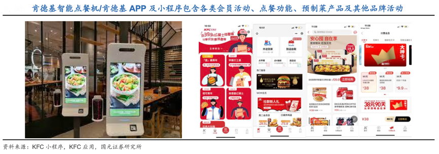 經(jīng)典案例:根據(jù)KFC小程序、KFC應(yīng)用、國元證券研究所等綜合資訊表明,肯德基公司從2015年開展數(shù)字化轉(zhuǎn)型,2016年肯德基成為中國首家推出超級 APP 的快餐品牌并實行會員計劃,先后推出自有 APP 和 微信小程序、數(shù)字餐廳人工智能菜單、AI 多場景智能點餐機、數(shù)字化人臉識別支付、 智能外賣配送系統(tǒng)等全方位數(shù)字化業(yè)務(wù),至2022年一季度,數(shù)字會員人數(shù)達到 3.7 億,約占到公司系統(tǒng)銷售額的62%。