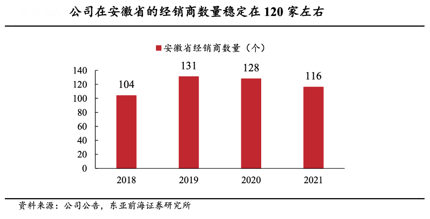 經(jīng)典案例:根據(jù)公司公告、東亞前海證券研究所等綜合資訊表明,文王貢酒當(dāng)前是省內(nèi)二線品牌,大本營市場為安徽阜陽市。為積極突破和挖掘本地市場,文王貢酒提出了“控盤分利、直控終端”,縣級市場團(tuán)購等模式。文王貢酒近幾年并未大幅增加招商數(shù)量,經(jīng)銷商數(shù)量穩(wěn)定在 120 家左右,而是聚焦于挖掘渠道潛力和結(jié)構(gòu)的優(yōu)化。從噸價(jià)和毛利率來看,文王貢酒在本地市場的產(chǎn)品升級 上不斷取得突破。