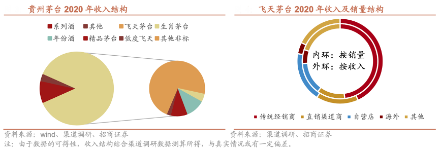 經(jīng)典案例:根據(jù)wind、渠道調(diào)研、招商證券等綜合資訊表明,傳統(tǒng)、直銷、自營三架馬車齊發(fā)力,成就飛天五百億超級單品。2020年茅臺公司實(shí)現(xiàn)收入980億,茅臺酒占比87%。結(jié)合渠道調(diào)研數(shù)據(jù)測算,53度飛天茅臺貢獻(xiàn)收入在 500 億以上,成為難以超越的超高端超級大單品。