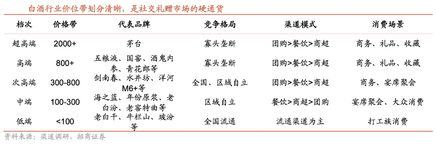 經(jīng)典案例:根據(jù)渠道調(diào)研、招商證券等綜合資訊表明,由于消費(fèi)場景相對剛性,白酒的韌性和抗風(fēng)險能力較強(qiáng),價格波動小,且相對茶葉、名貴食材(燕 窩、大閘蟹)等又具有高出數(shù)籌的品牌屬性,茅臺的收藏屬性更是為長期的價格增長奠定基礎(chǔ)。因此,消費(fèi)者對于白酒的價格敏感程度被大大降低,甚至在一些重要社交場合中,價格越高的白酒越能刺激需求。