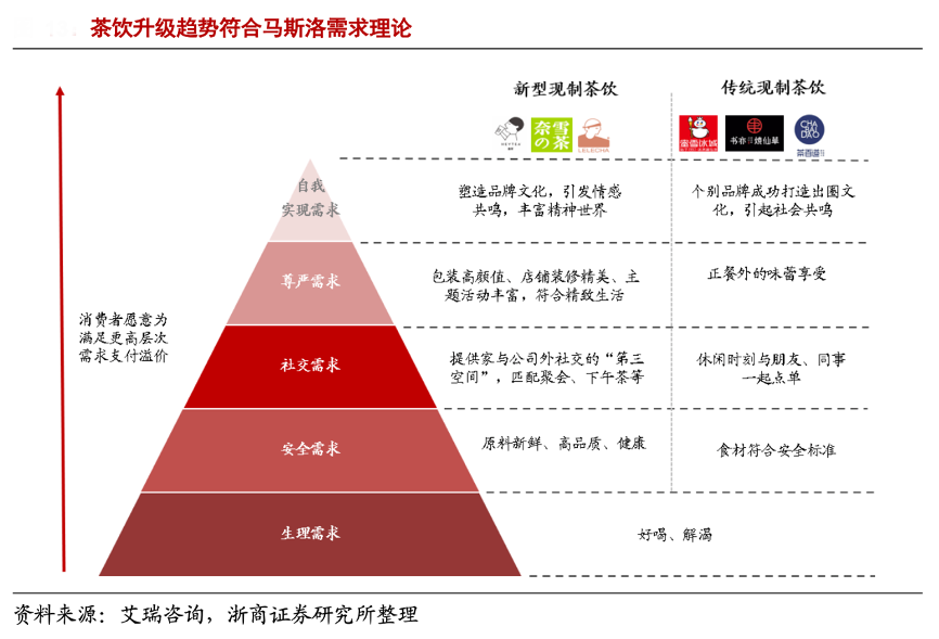 經(jīng)典案例:根據(jù)艾瑞咨詢、浙商證券研究所等綜合資訊表明,在人均消費(fèi)支出整體向上的趨勢下,新式茶飲作為“消費(fèi)升級類”產(chǎn)品受宏觀經(jīng)濟(jì)環(huán)境利好,消費(fèi)者對茶飲的需求逐步從單一的“解渴、好喝”提升到健康化、多元化、個(gè)性化、品牌化,并愿意為實(shí)現(xiàn)更高層次的需求付費(fèi)。