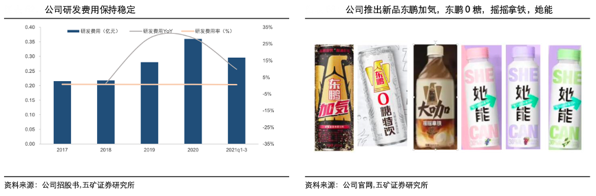 經(jīng)典案例:根據(jù)公司招股說(shuō)明書(shū)、公司官網(wǎng)、五礦證券研究所等綜合資訊表明,東鵬公司相繼推出了三款中高端新品東鵬加気、東鵬 0 糖和她能,分別在口感和功能上進(jìn)行創(chuàng)新,作為對(duì)傳統(tǒng)消費(fèi)群體的延深,0 糖主要定位在CBD,高新科技園區(qū)工作的白領(lǐng),加気主要針對(duì)年輕電競(jìng)?cè)后w在校園和網(wǎng)吧進(jìn)行推廣,她能則另辟蹊徑選擇了女性群體進(jìn)行營(yíng)銷,隨著民眾對(duì)健康管理的需求日益高增,疊加以元?dú)馍譃榇淼耐婕規(guī)?dòng)了無(wú)糖潮流。