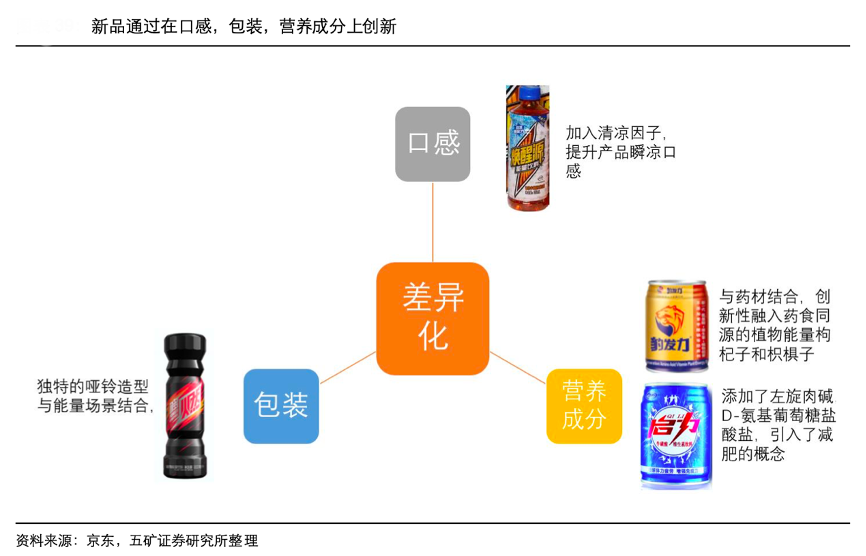 經(jīng)典案例:根據(jù)京東、五礦證券研究所等綜合資訊表明,近年來(lái)許多食品飲料龍頭公司如統(tǒng)一,伊利,娃哈哈,中糧等通過(guò)在口感,包裝,營(yíng)養(yǎng)成分上創(chuàng)新主動(dòng)切入能量飲料賽道。