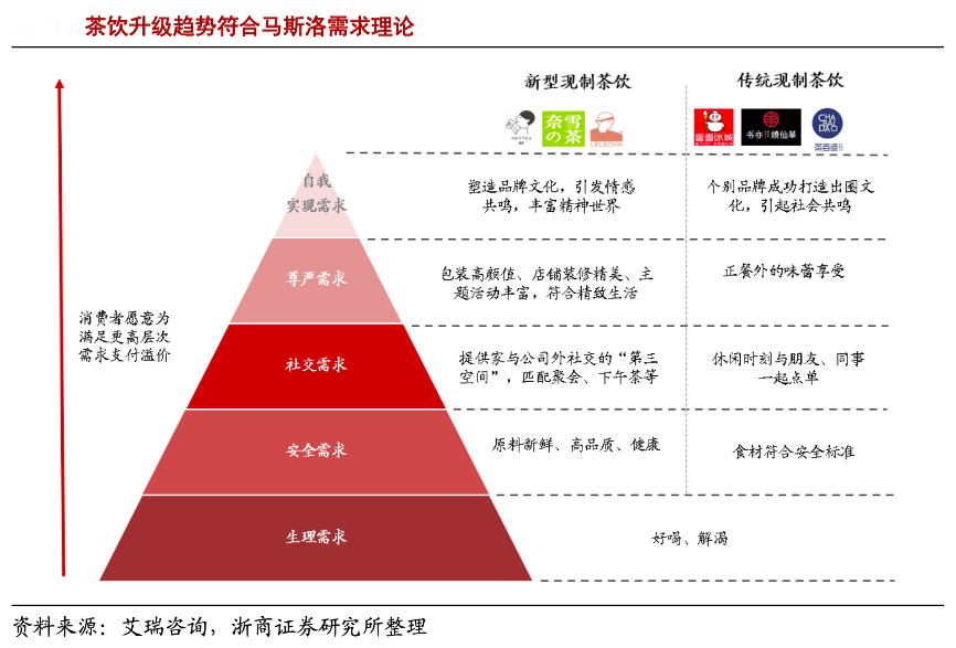 經(jīng)典案例:根據(jù)艾瑞咨詢、浙商證券研究所等綜合資訊表明,在人均消費支出整體向上的趨勢下,新式茶飲作為“消費升級類”產(chǎn)品受宏觀經(jīng)濟環(huán)境利好。消費者對茶飲的需求逐步從單一的“解渴、好喝”提升到健康化、多元化、個性化、品牌化,并愿意為實現(xiàn)更高層次的需求付費。