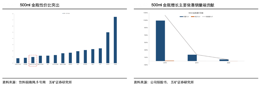 經(jīng)典案例:根據(jù)公司招股書、飲料招商網(wǎng)、5號網(wǎng)、五礦證券研究所等綜合資訊表明,東鵬公司采用差異化戰(zhàn)略,在包裝上避開了價格較高的紅牛三片罐金屬包裝,采用PET塑料包裝,且創(chuàng)造性地配上防塵蓋以適應戶外,長途,旅行等多樣性場景,在此基礎上于 2009 年正式切入能量飲料賽道,推出了系列第一款 產(chǎn)品 250ml 金瓶特飲,定價 3.5 元/瓶,收獲了大批對價格敏感的藍領人 群如貨車司機,快遞員,外賣員的喜愛。