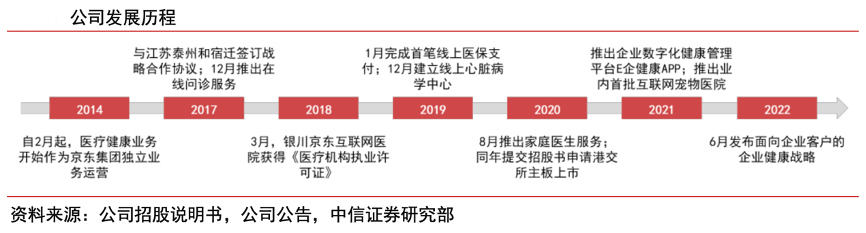 經(jīng)典案例:根據(jù)公司招股說(shuō)明書(shū)、公司公告、中信證券研究部等綜合資訊表明,京東健康是我國(guó)最大的在線醫(yī)療健康平臺(tái)與零售藥房,2014 年以來(lái)醫(yī)療健康作為京東集團(tuán)獨(dú)立的類目進(jìn)行運(yùn)營(yíng);2016 年 5 月,“京東大藥房”上線, 標(biāo)志著京東集團(tuán)正式進(jìn)入醫(yī)藥電商行業(yè);2018 年 11 月,京東健康注冊(cè)成為有限公司,并于 2020 年在港交所上市。