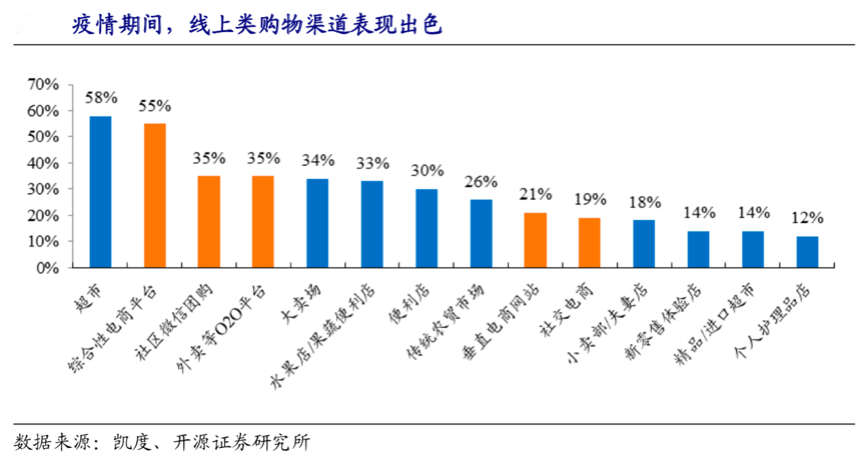 以大賣場、超市為代表的便利生活設(shè)施,因疫情居家生活的需要其有了大規(guī)模的增長,大眾的生活消費在線上渠道的購買頻率大大增加,人在家中坐、貨自配送來的消費形態(tài)日益重要,更日益成為疫情后的消費常態(tài)。