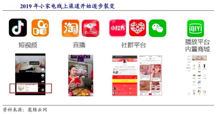 全渠道銷售日益成為小家電消費的重點所在,渠道裂變從簡單的短視頻經(jīng)營向直播、社群平臺及播放平臺等進化,時代在改變,小家電的消費訴求及互動體驗觸點同樣在變。根據(jù)奧維云網(wǎng)等綜合資訊表明,2019年小家電線上渠道開始逐步裂變,以直播帶貨為例,2019 年雙 11 李佳琦與薇婭兩位頭部主播分別 實現(xiàn)近 30 億元成交額,頭部 KOL 影響力的日益提升,進一步加速了渠道的裂變。各新進品牌依賴渠道裂變而創(chuàng)新品牌投放內(nèi)容、KOL價值及視頻音頻傳播渠道等,機會多多。