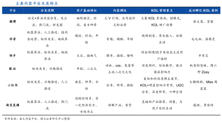 內(nèi)容是直播電商業(yè)務的重要競爭利器,根據(jù)各大內(nèi)容平臺、國元證券研究中心等綜合資訊表明,優(yōu)秀的直播電商新零售企業(yè)多數(shù)橫跨微博、抖音、快手、B站等多個內(nèi)容平臺,有自己的品牌價值,更有自己的內(nèi)容調(diào)性,圍繞著用戶的消費基因,放大基于品牌特性的調(diào)性,同時激活KOL營銷能量,通過視頻表現(xiàn)、創(chuàng)意發(fā)想、測評互動等亮化品牌內(nèi)容體系,視頻類平臺在此類市場競爭中占據(jù)了“競爭優(yōu)勢”。