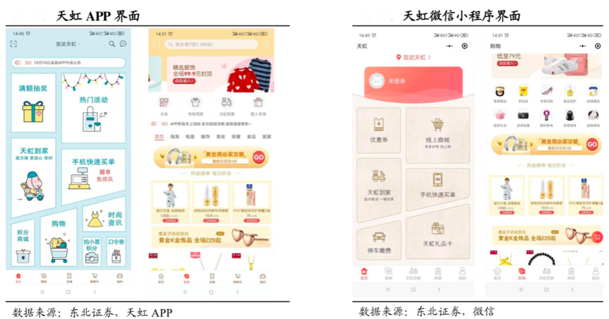 經(jīng)典案例:據(jù)東北證券、天虹APP、微信等綜合資訊顯示,天虹APP已經(jīng)涵蓋其全業(yè)態(tài),包括購(gòu)物中心、便利店、超市、百貨同時(shí)數(shù)字化改造;已經(jīng)囊括其全門(mén)店,所有功能從全國(guó)一線(xiàn)到四線(xiàn)城市200多家門(mén)店全部上線(xiàn)運(yùn)營(yíng);已經(jīng)覆蓋其“全流程”,集合了買(mǎi)單、客服、服務(wù)、評(píng)價(jià)等售前售中售后全服務(wù)價(jià)值鏈。