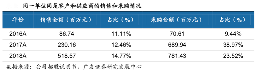 這類同一單位同是客戶和供應(yīng)商的銷(xiāo)售和采購(gòu)金額逐年遞增。2018年同一單位 同是客戶和供應(yīng)商的銷(xiāo)售額和采購(gòu)金額分別占銷(xiāo)售和采購(gòu)的比重分別為14.77%和 23.52%,銷(xiāo)售金額達(dá)到了5.2億元,采購(gòu)金額達(dá)到7.8億元;其中多多電商采取的供 應(yīng)鏈上下游衍生策略的銷(xiāo)售金額和采購(gòu)金額比重分別是84.28%和80.30%。