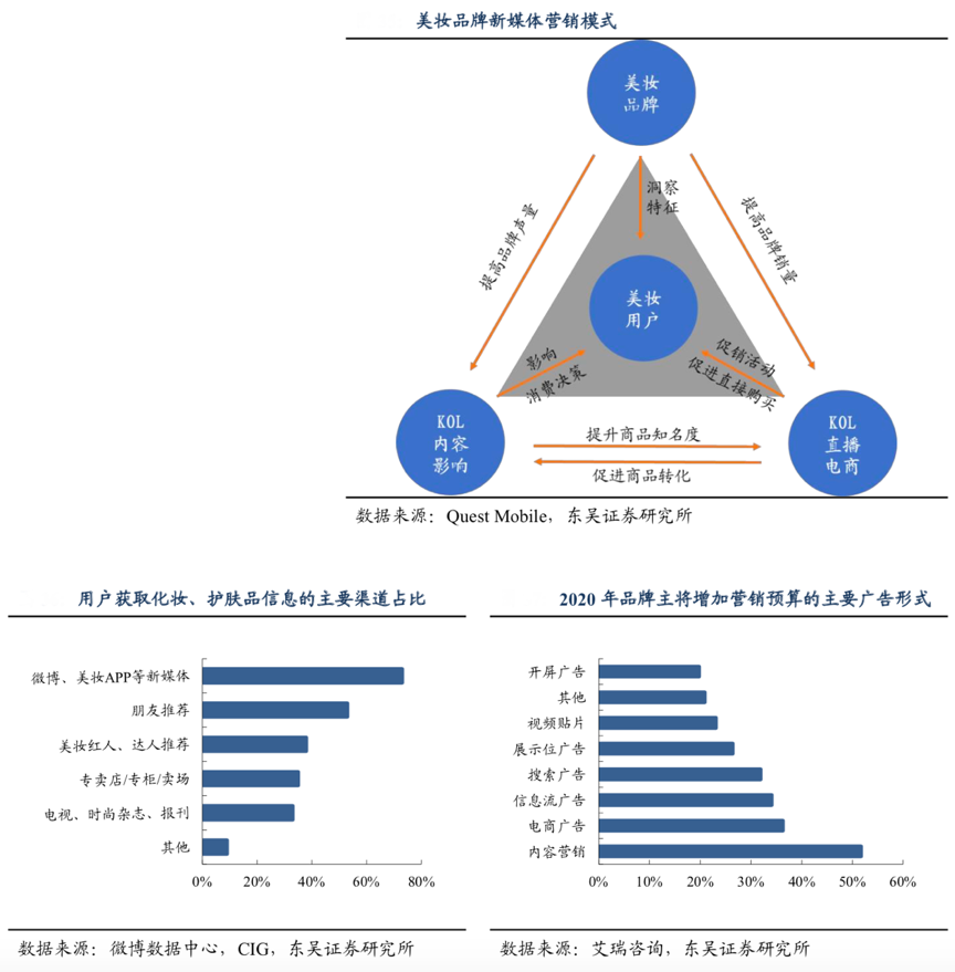 經(jīng)典案例:根據(jù)Quest Mobile、微博數(shù)據(jù)中心、GIG、艾瑞咨詢、東吳證券研究所等綜合資訊表明,2019 年,77.5%的中國(guó)品牌都較為關(guān)注內(nèi)容營(yíng)銷;2020 年,51.7%的廣告主表示內(nèi)容營(yíng)銷將成為他們主要增加預(yù)算的營(yíng)銷途徑。相比其他視頻貼片廣告或信息流廣告等,內(nèi)容營(yíng)銷傳遞成分和功效等有效信息,更適應(yīng)目前互聯(lián)網(wǎng)的社區(qū)化特征,迎合消費(fèi)者對(duì)內(nèi)容的追求。