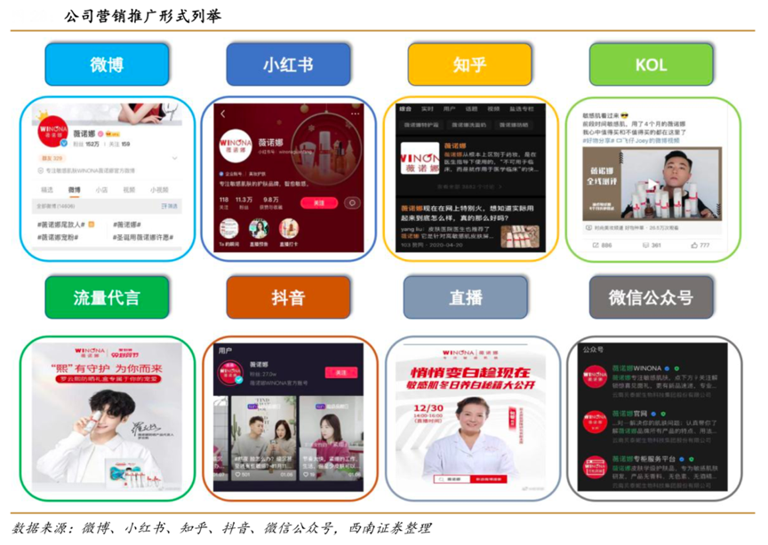 經(jīng)典案例:根據(jù)微博、小紅書、知乎、抖音、微信公眾號(hào)、西南證券等綜合表明,為不斷提升公司品牌知名度,擴(kuò)大銷售規(guī)模,貝泰妮在各渠道推廣方面投入均不斷增加。 2020H1其渠道及廣告宣傳費(fèi)用為 3.2 億元,在銷售費(fèi)用中占比為 67.8%。渠道及廣告宣傳費(fèi)是公司銷售費(fèi)用的主要構(gòu)成。