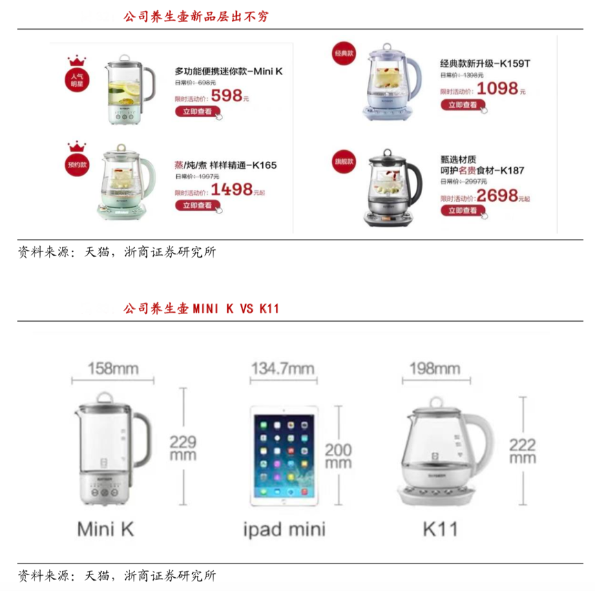 經(jīng)典案例:根據(jù)天貓、浙商證券研究所等綜合資訊表明,2020 年 6 月北鼎上新了新品養(yǎng)生壺,相比過往養(yǎng)生壺產(chǎn)品,其一體機(jī)設(shè)計更加便攜,但容量、功率有所下調(diào)。相比于同品牌其他養(yǎng)生壺,新養(yǎng)生壺在功能細(xì)分方面有所簡化,價格也有所下調(diào)。是同品牌養(yǎng)生壺的一半或三分之一。但產(chǎn)品一經(jīng)上線迅速成 為了北鼎熱銷產(chǎn)品,是線上店鋪銷量第一的養(yǎng)生壺。